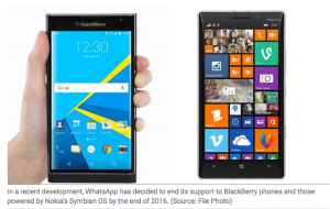 The mobile operating systems offered by Google, Apple and Microsoft, which account for nearly 99 per cent of sales today, were in less than 25 per cent of mobile devices sold at that time, says a recent blog post by WhatsApp which has decided to end its support to BlackBerry phones and those powered by Nokia’s Symbian OS by the end of this year.
