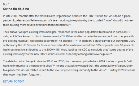 Then an article appeared about previous global pandemics, such as swine flu, which it was discovered was not a novel coronavirus and people, particularly those over 60, had anti-bodies. Professor john Newton got involved heavily in COVID-19 anti-body tests and this lesson left forgotten.