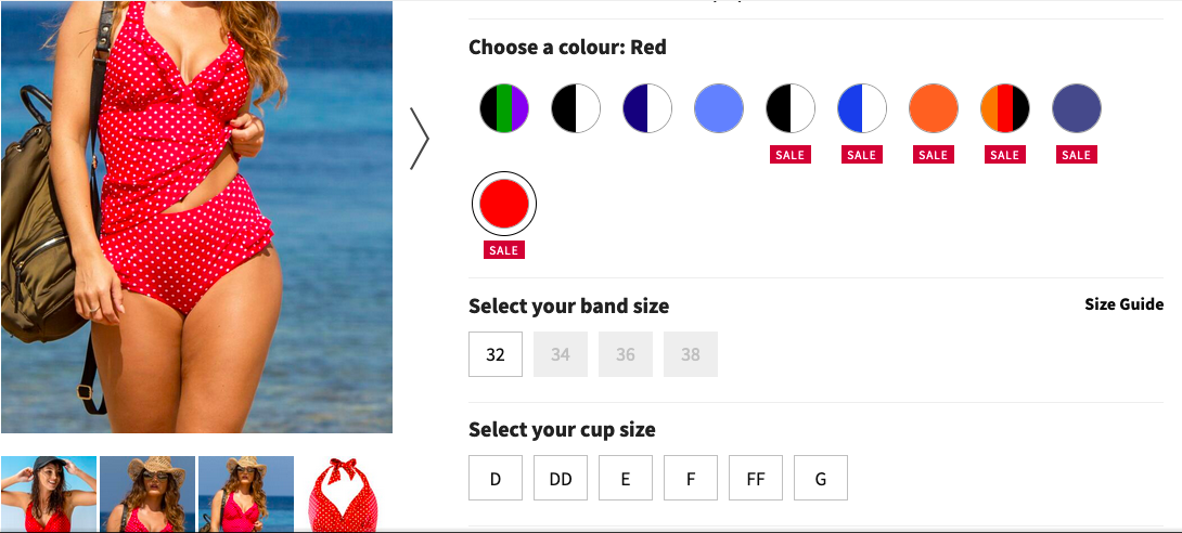 - Styles – why not have one graph, where all the styles of swimwear can be seen side-by-side with terms used to describe them and allow users to click on the styles they want to add them to their basket.