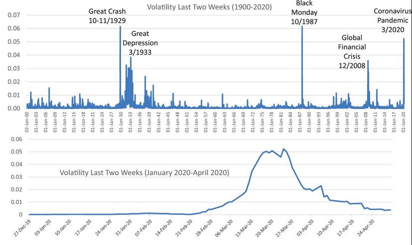 Realized U.S. stock market volatility, January 1900 to April 2020